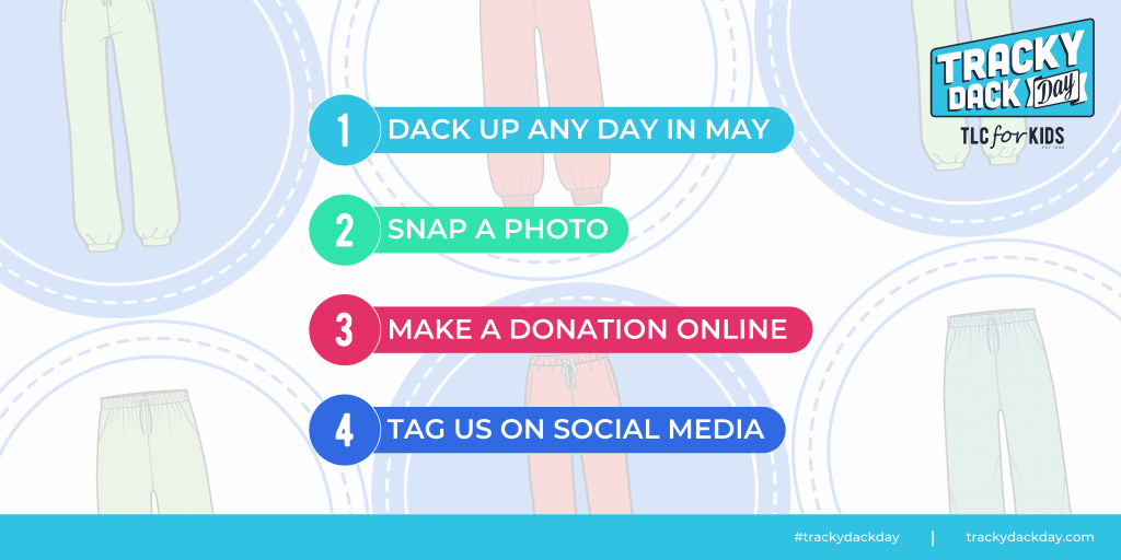 Tracky Dack Day is organised by TLC for Kids, Australia’s most inclusive children’s charity provides practical relief to sick kids and their families.